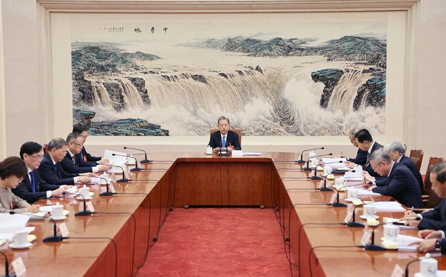 3月8日,十四届全国人大二次会议主席团常务主席第一次会议在北京人民大会堂举行。大会主席团常务主席、全国人大常委会委员长赵乐际主持会议。新华社记者 姚大伟 摄